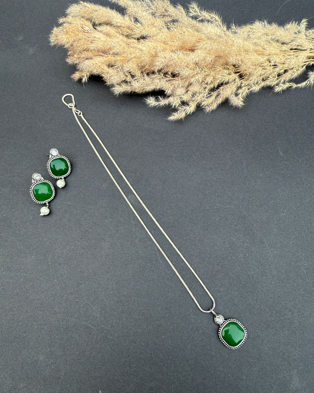 - Premium silver oxidized set- Necklace & earrings- Handmade Jewelry with stones Little bit variation in...