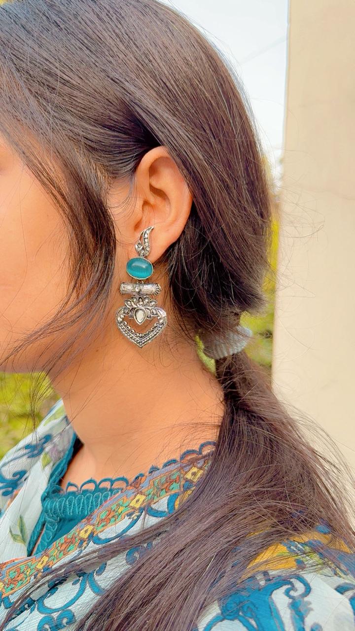 - Premium silver oxidized earrings with stones