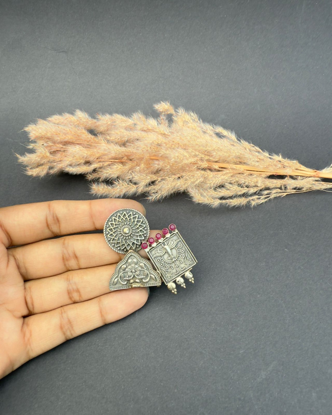 - Premium silver oxidized earrings with stones- Indian Handmade Jewelry