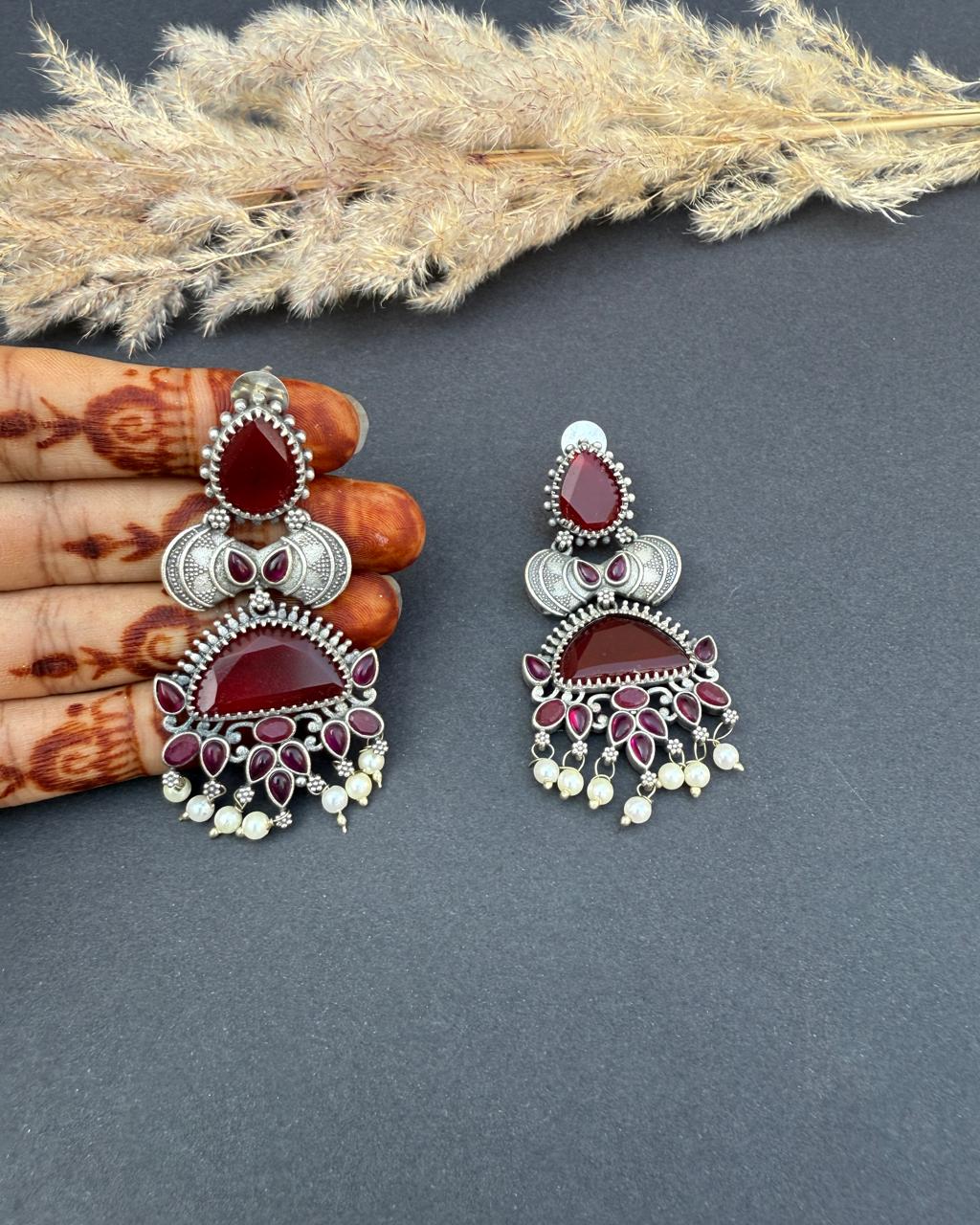 This artistic ring with stone work totaly handmade with premium quality brass silver oxidized plated...