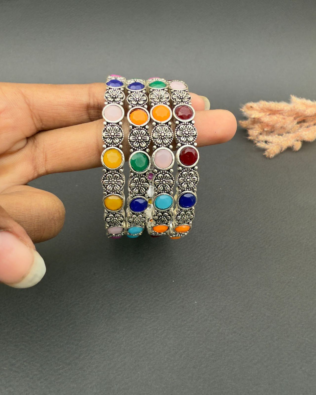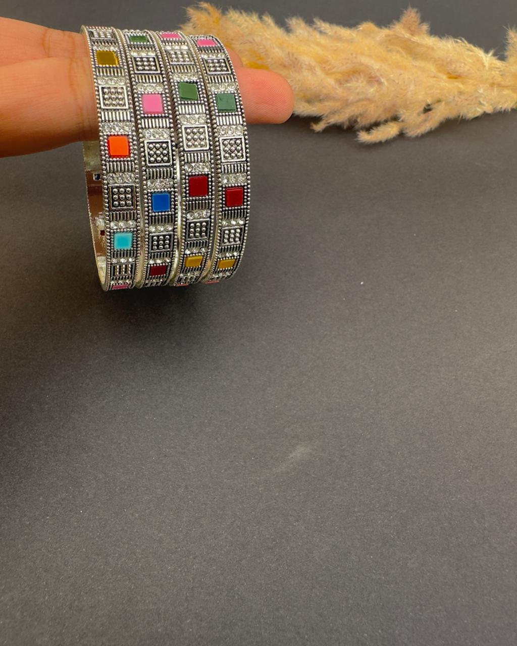 Add a touch of vintage charm to your look with this Silver Oxidized Bangles Set,...