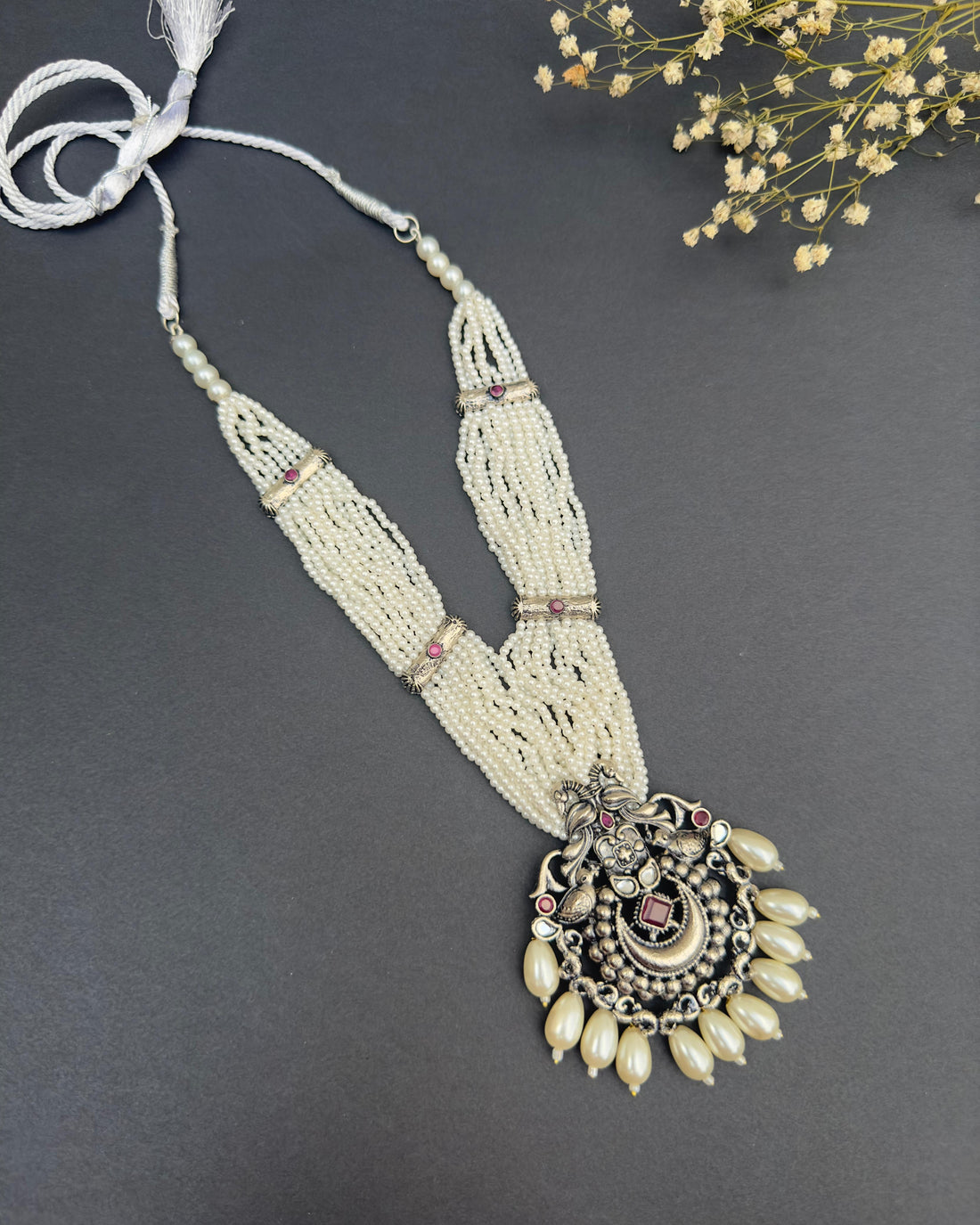 - 18K Silver Plated Handmade Mala Set made in an antique style with a combination...