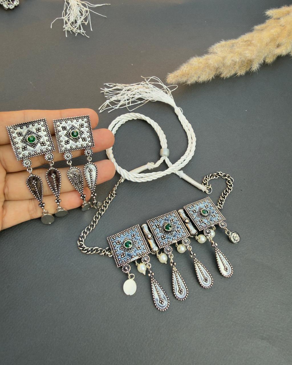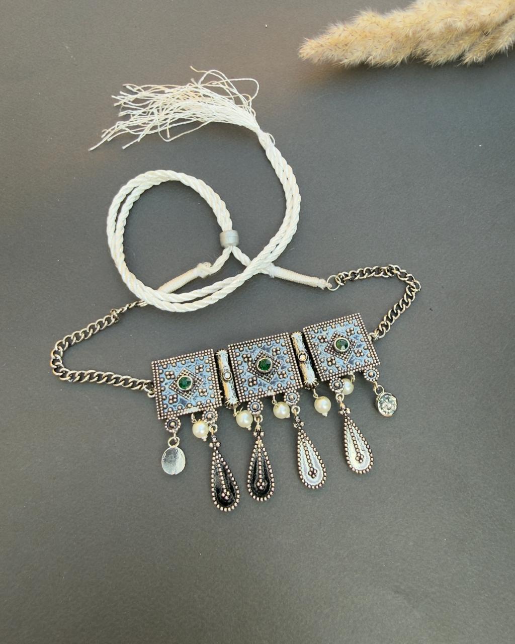 - 18K Silver Plated Handmade choker set made in an antique style with a combination...