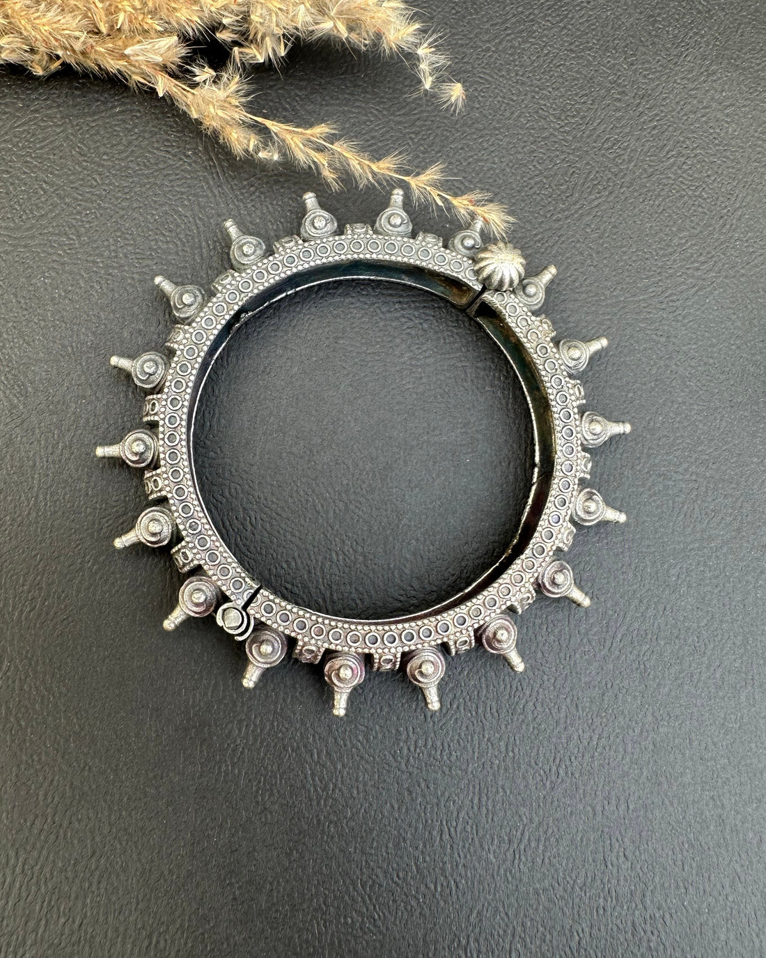 Premium silver oxidized handmade kara with stones and adjustable lock.