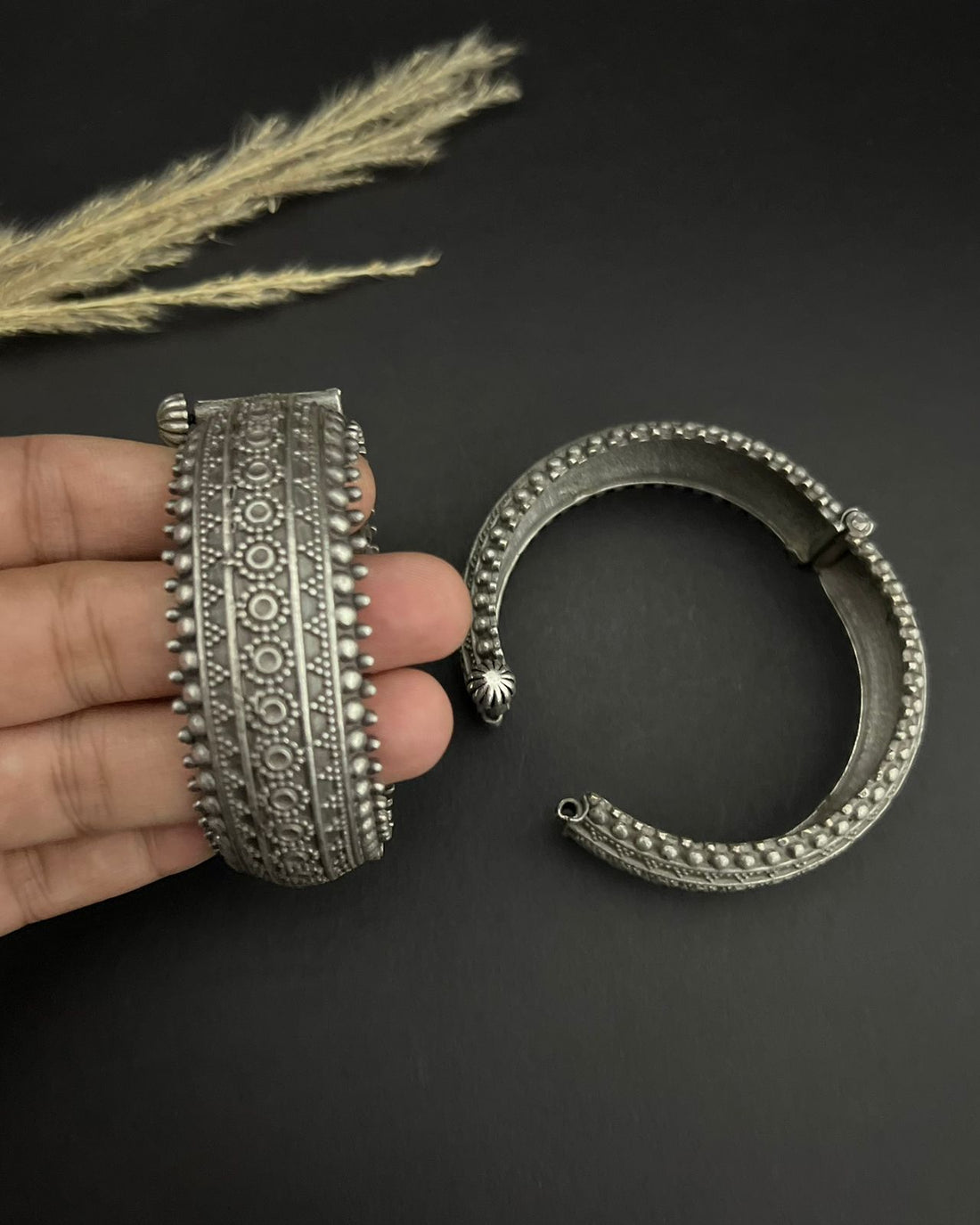 Add a touch of vintage charm to your look with this Silver Oxidized Bangles Set,...