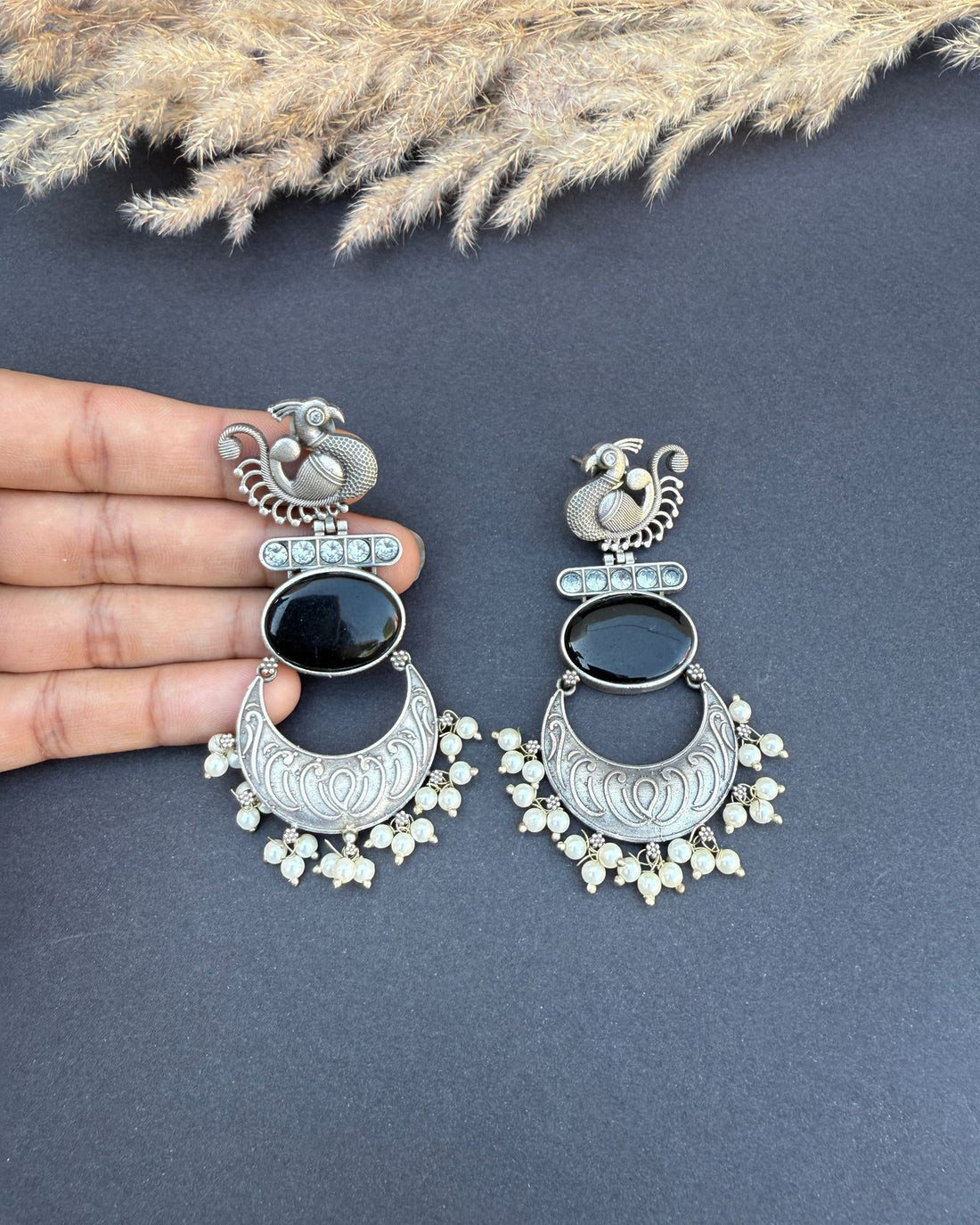 - Premium silver oxidized earrings with stones- Indian Handmade Jewelry
