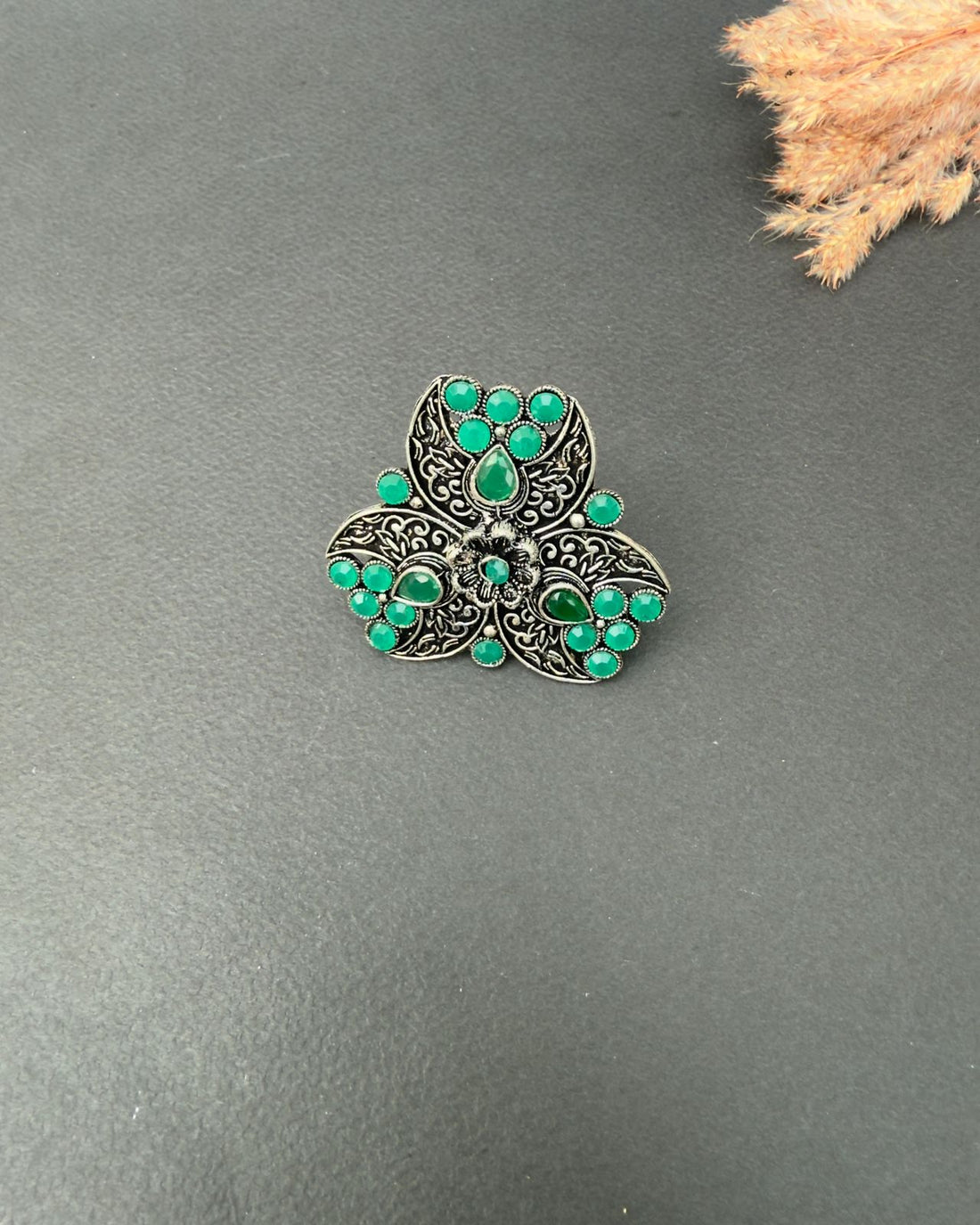 This artistic ring with stone work totaly handmade with premium quality brass silver oxidized plated...