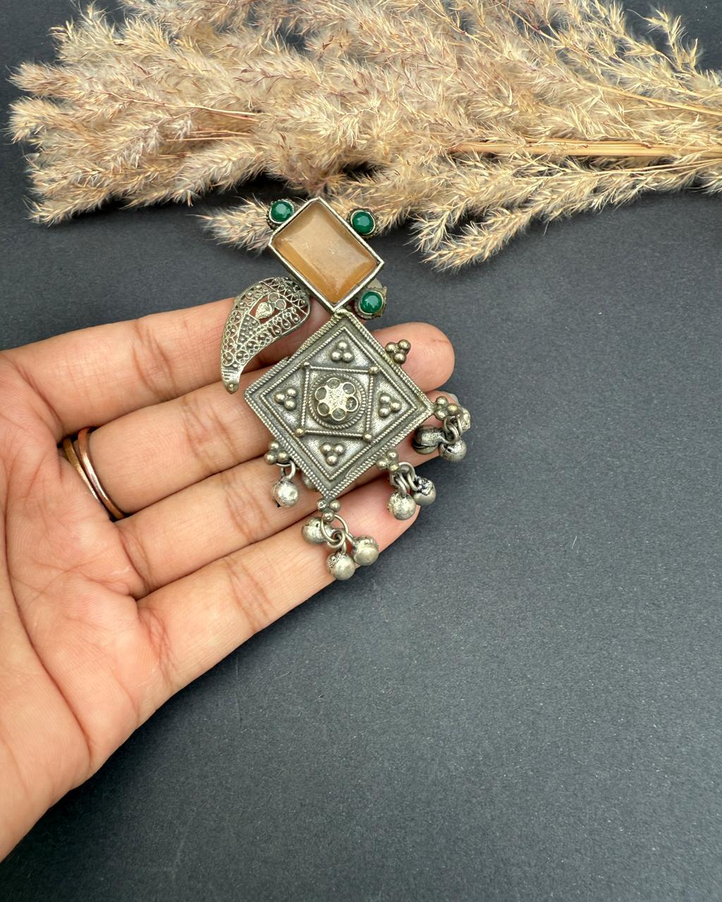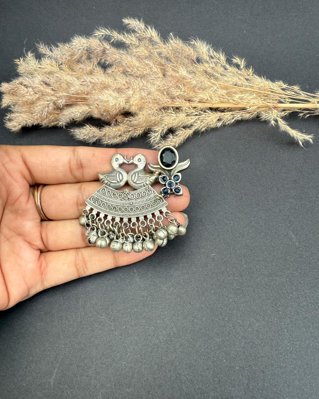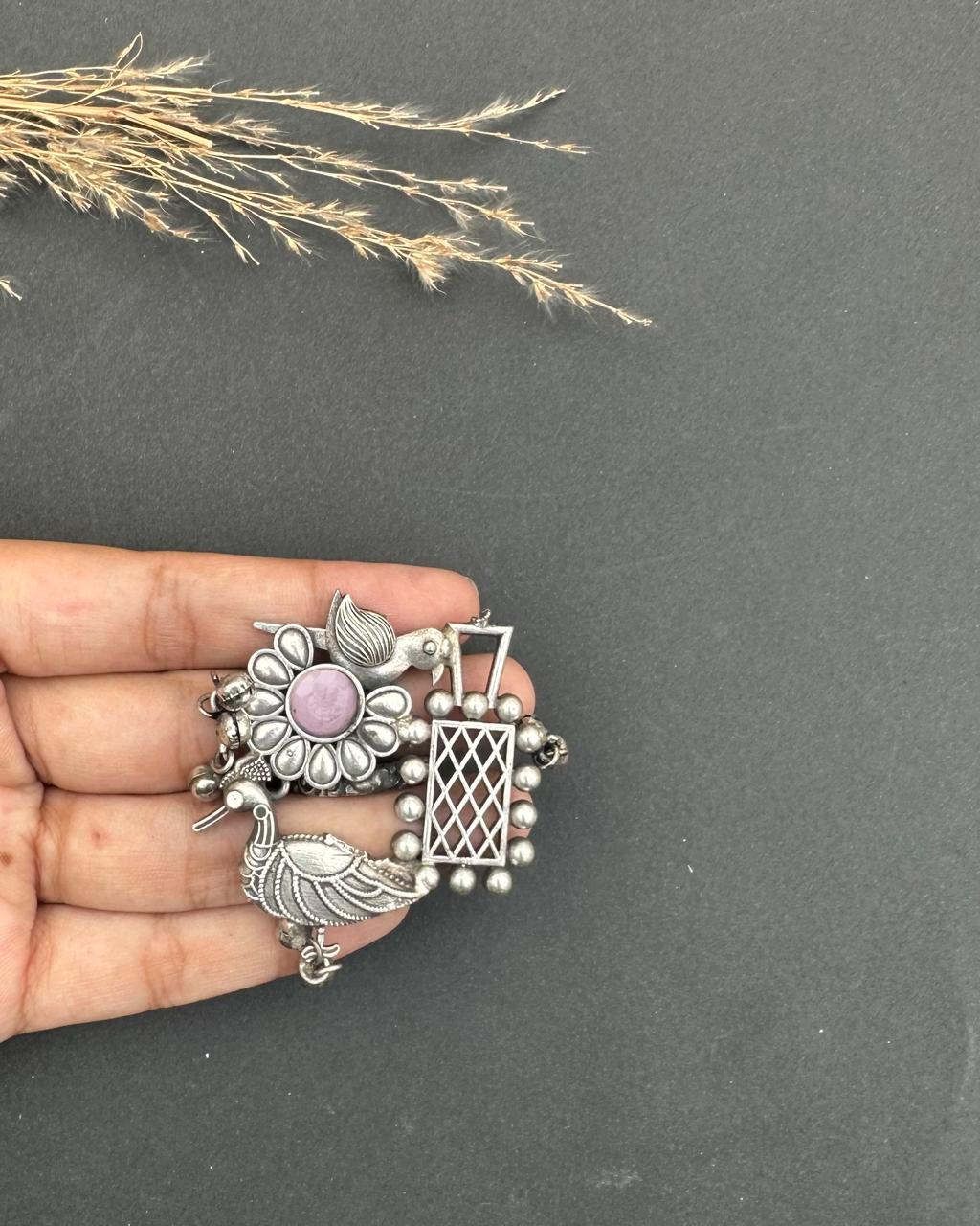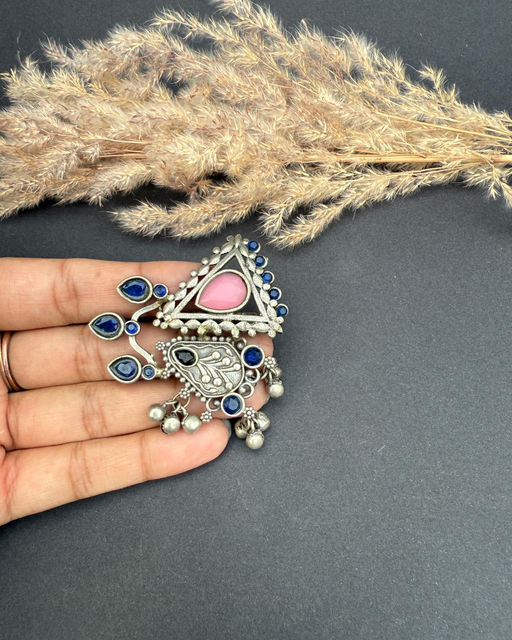 This artistic ring with stone work totaly handmade with premium quality brass silver oxidized plated...