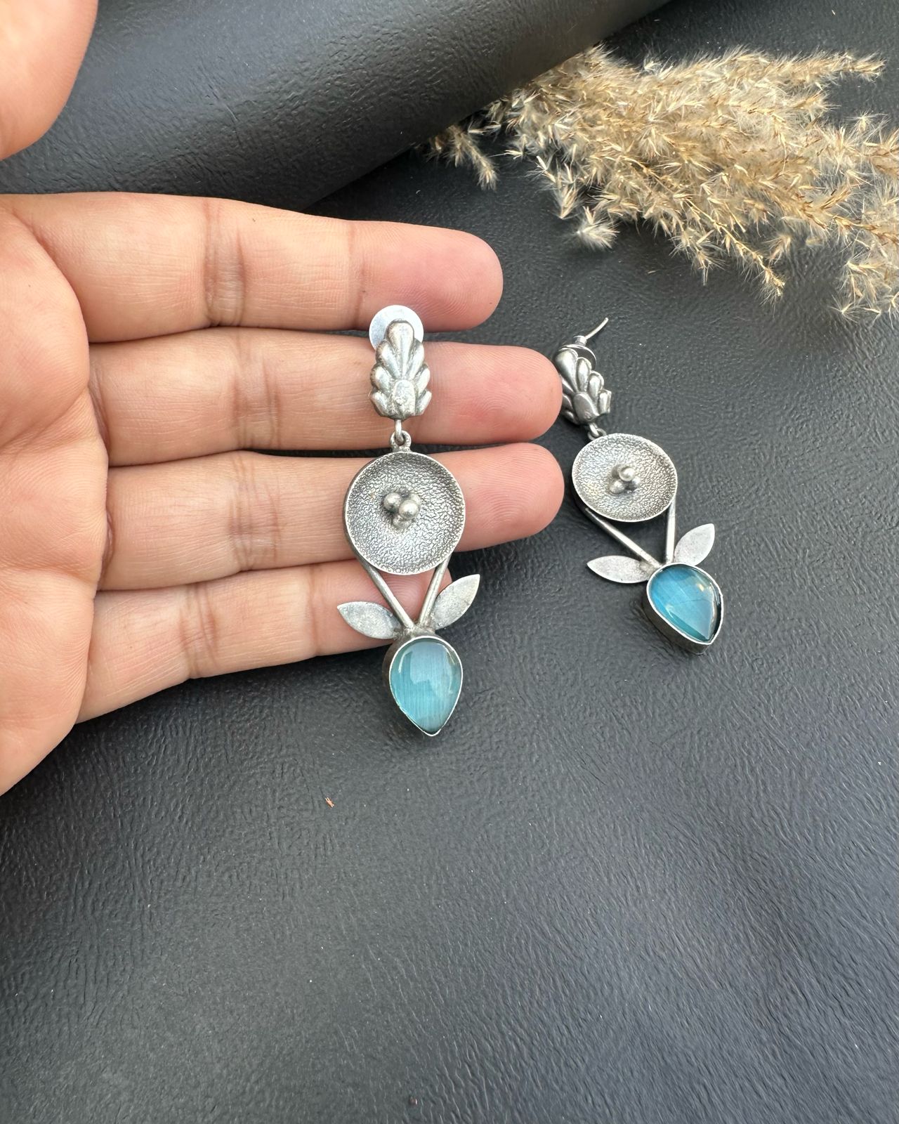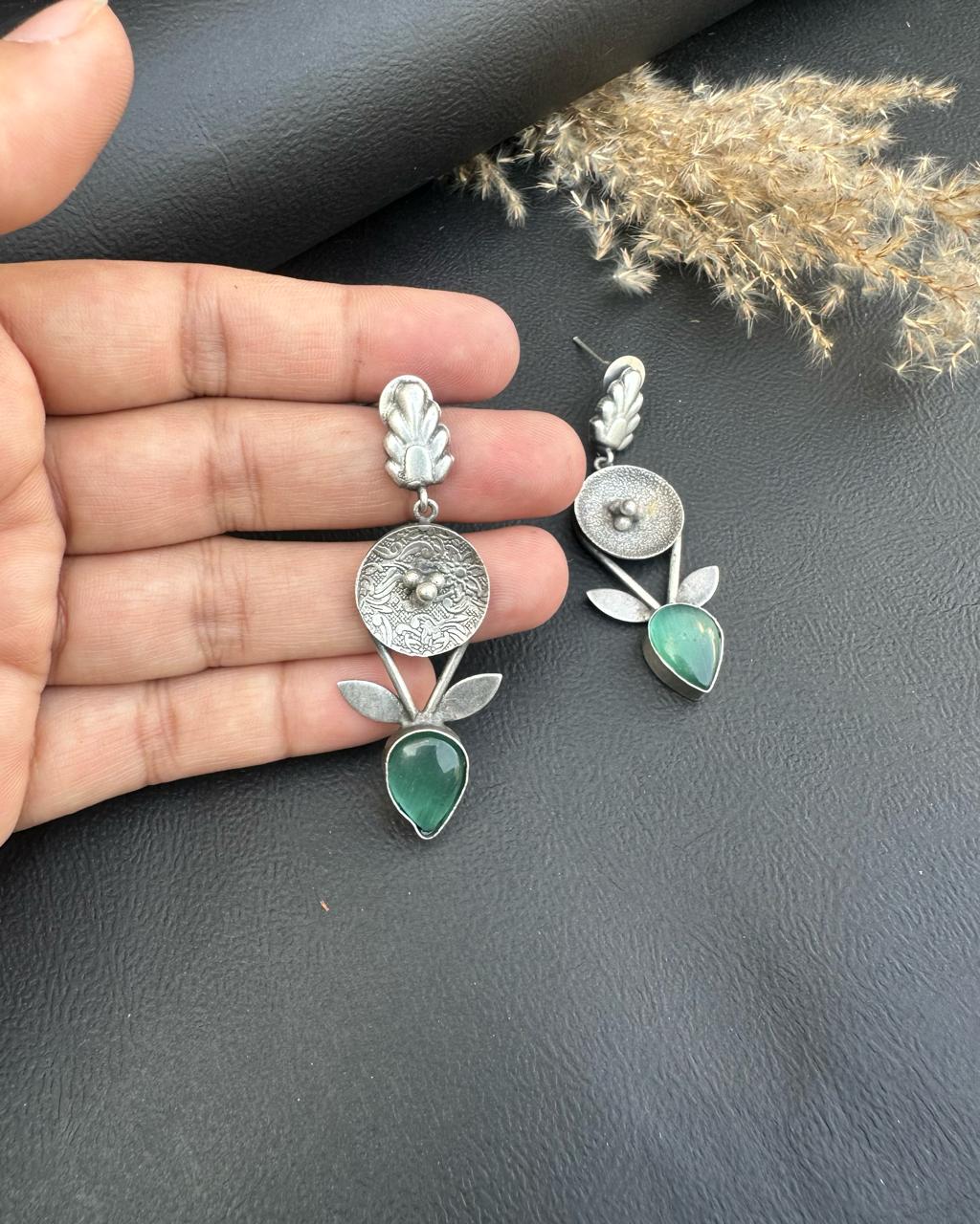 - Premium silver oxidized earrings with stones