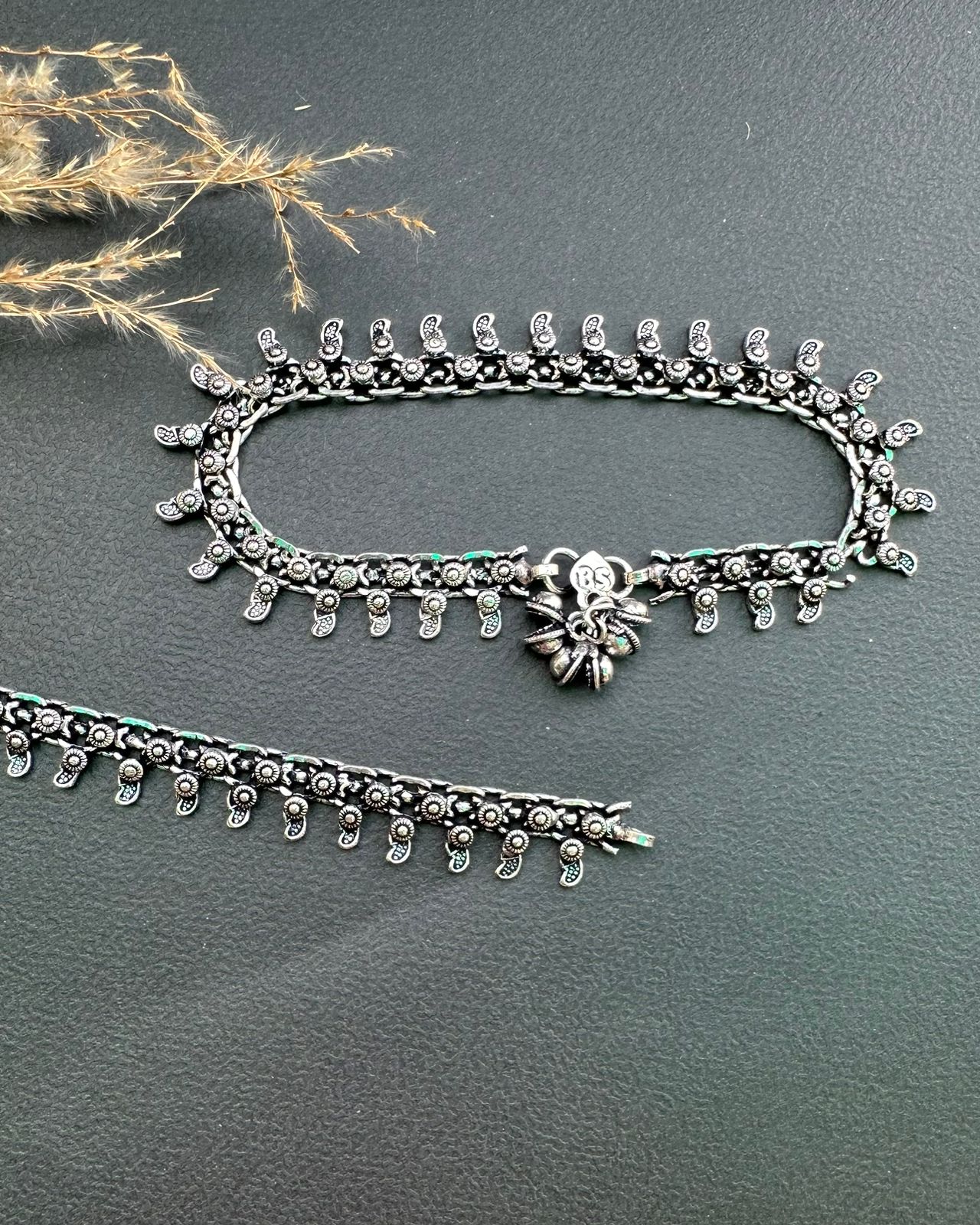 Enhance your style with our elegant oxidised silver anklets – designed to look like traditional silver anklets for women at an affordable price. These lightweight ladies anklets silver, also known as silver payal or feet anklet, are perfect for daily wear or festive occasions. Durable, skin-friendly, and stylish, they add timeless charm to every step.