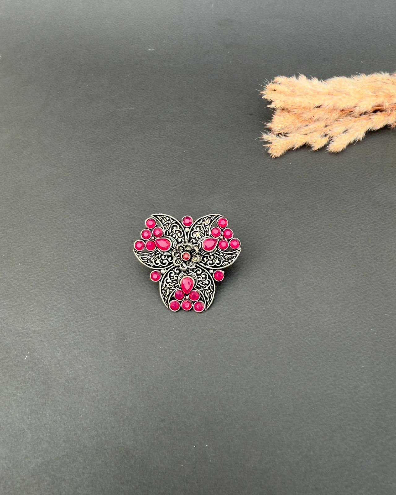 This artistic ring with stone work totaly handmade with premium quality brass silver oxidized plated