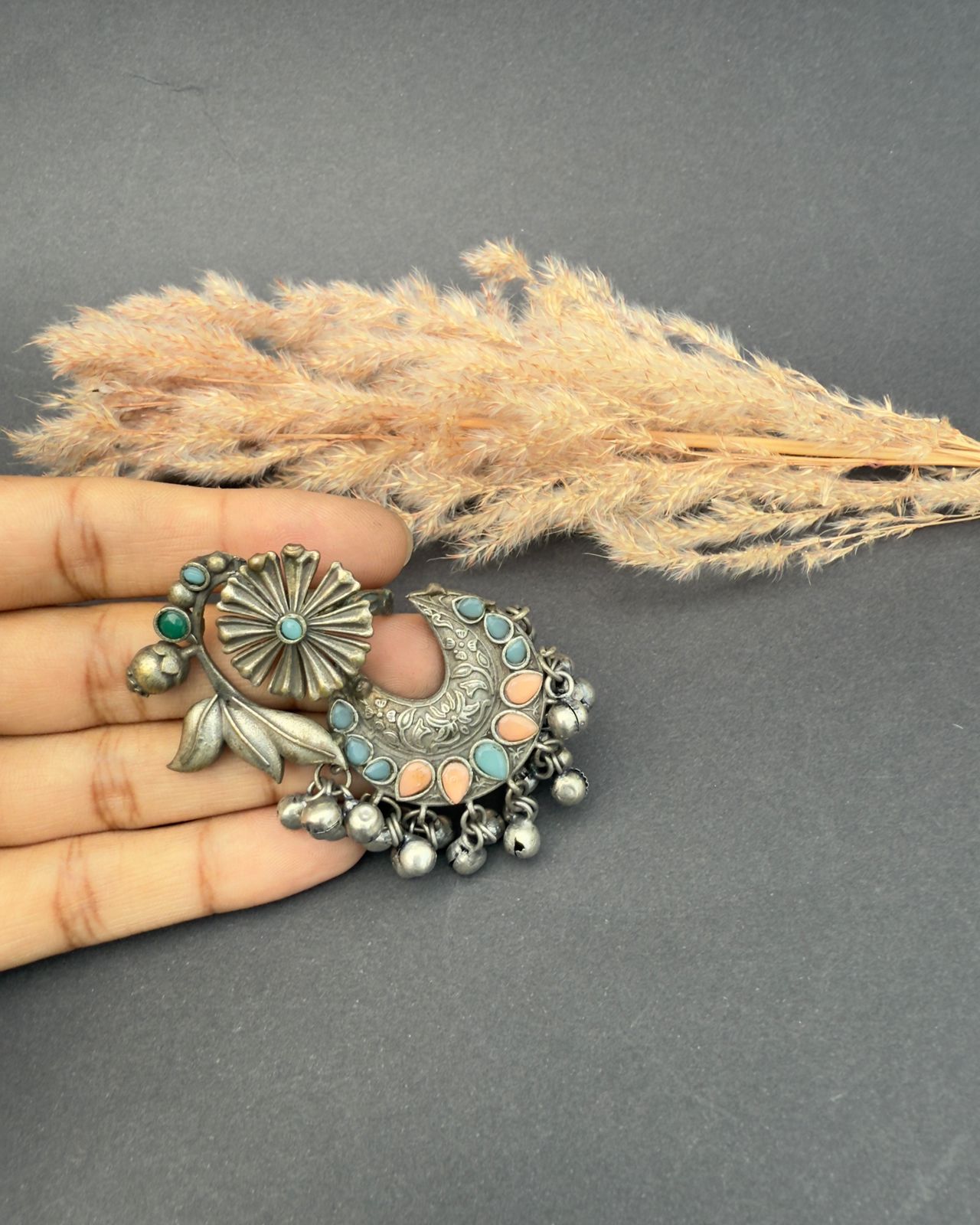 This artistic ring with stone work totaly handmade with premium quality brass silver oxidized plated as its handmade so a little human touch would be visible.