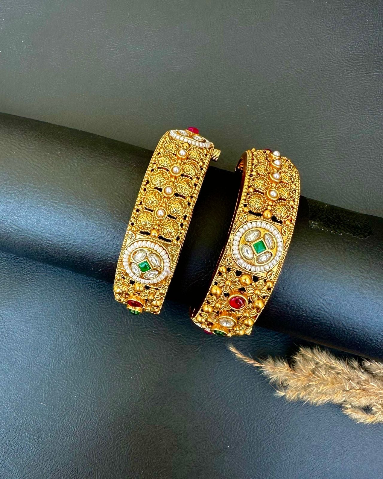 Marwari jewelry is basically a Rajasthani traditional jewelry, mostly worn by brides, its been made with brass and copper mixture gold plated with specially boasts of multi colored gems and pearls work known as the ‘aad’ which is unique to Rajasthani culture, and has recently captured the imagination of contemporary brides from different cultures.
