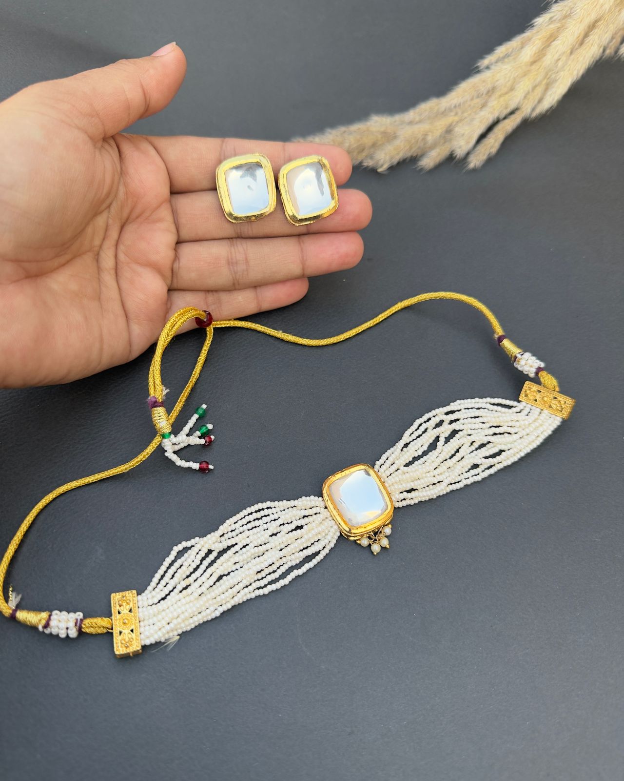 Polki Kundan Handmade Set with gold plating.