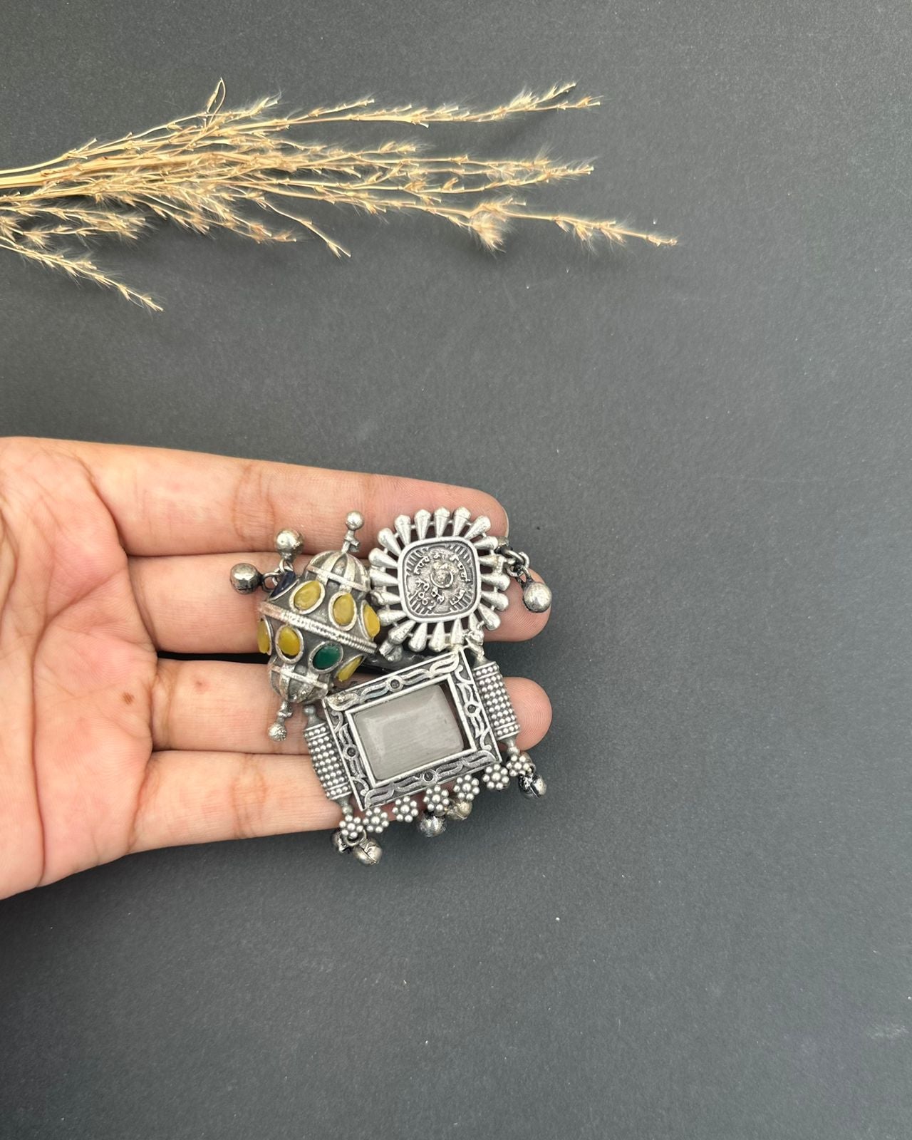 This artistic ring with stone work totaly handmade with premium quality brass silver oxidized plated as its handmade so a little human touch would be visible.