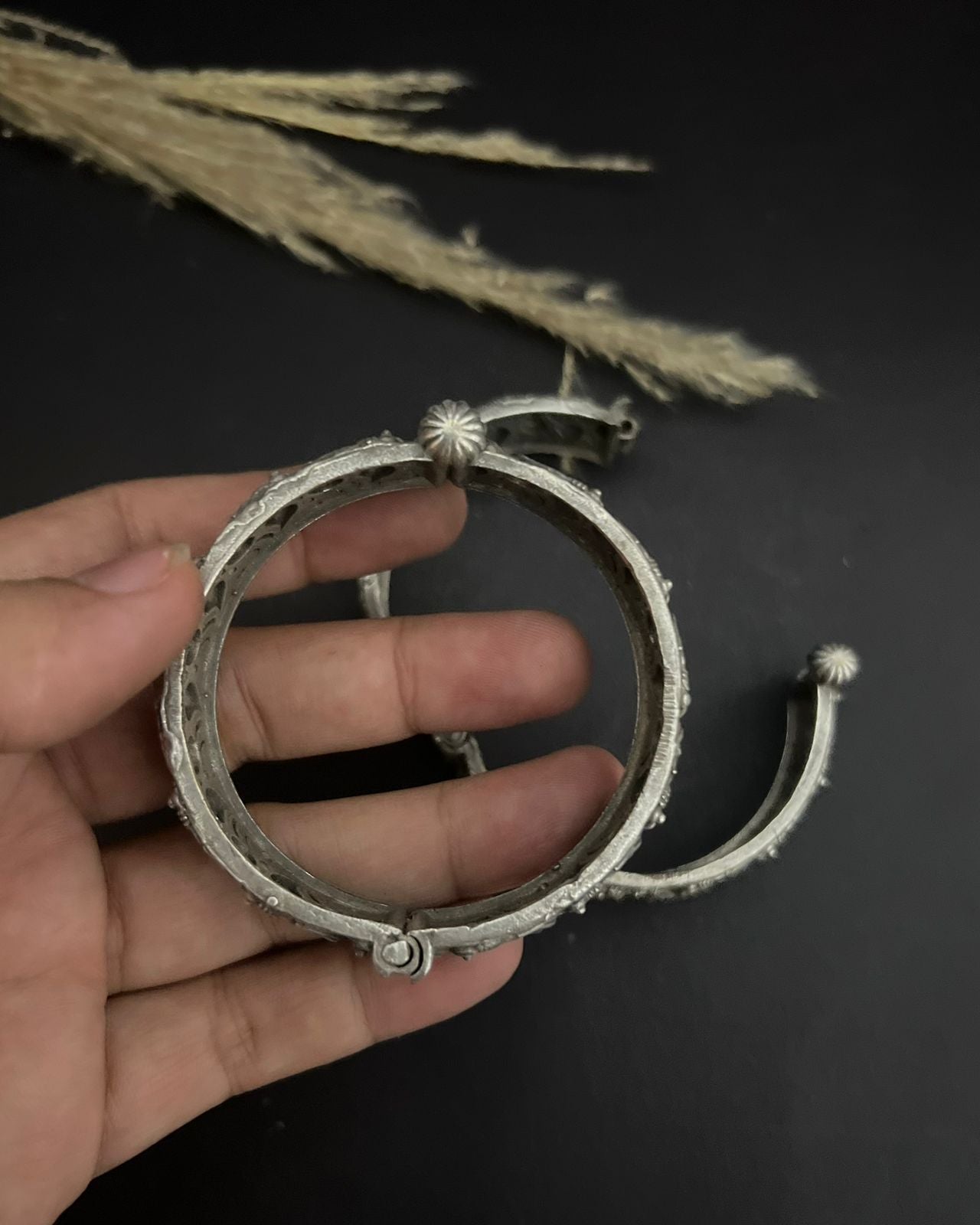 Premium silver oxidized Kara with adjustable lock