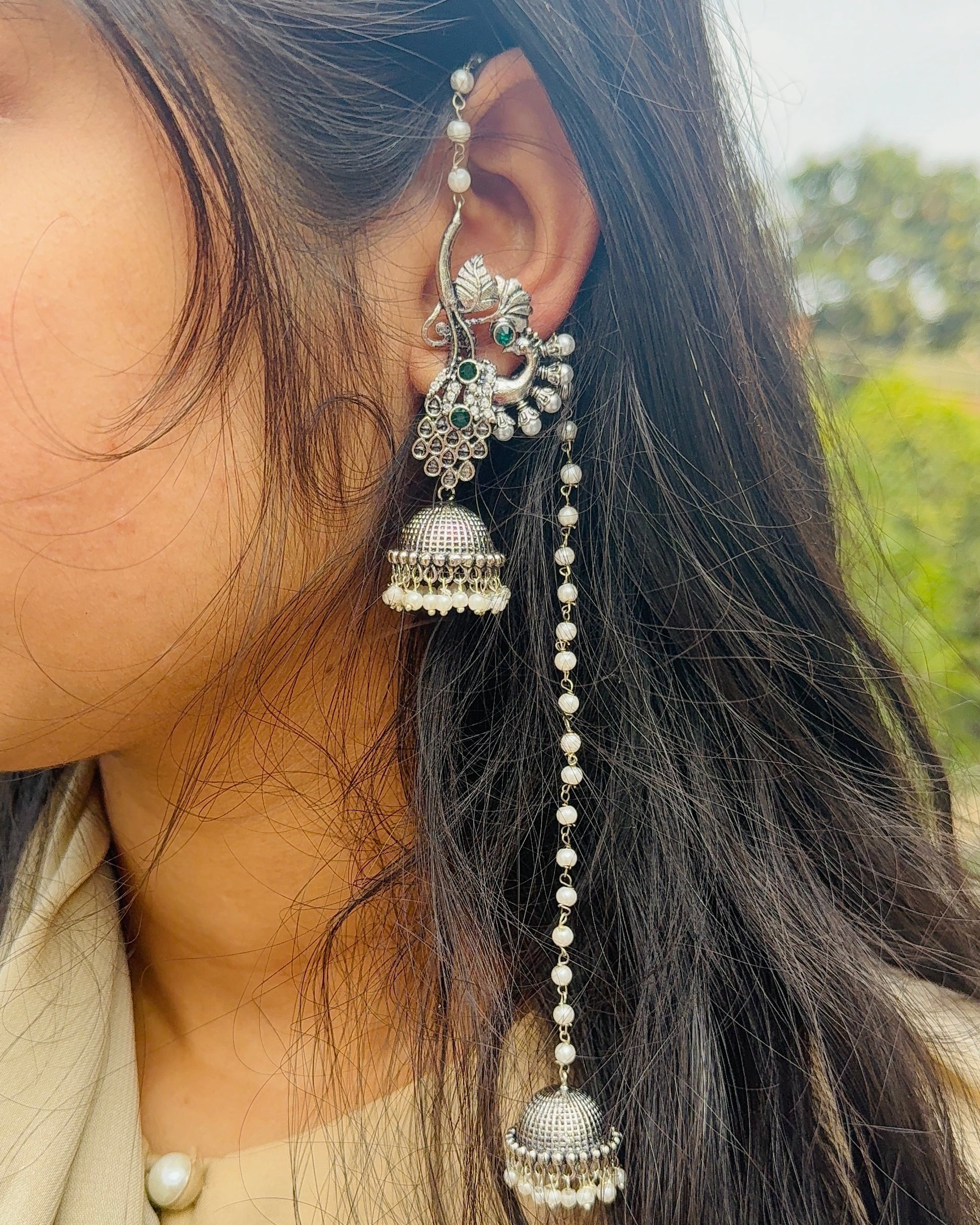 - 18K Silver Plated Handmade earrings made in an antique style with a combination of stones & pearls to enhance its look.