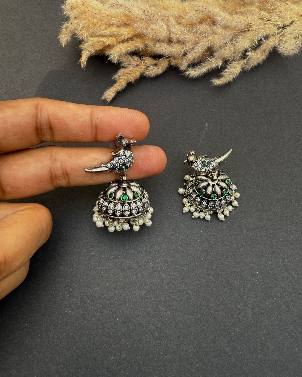 - 18K Silver Plated Handmade earrings made in an antique style with a combination of stones & pearls to enhance its look.