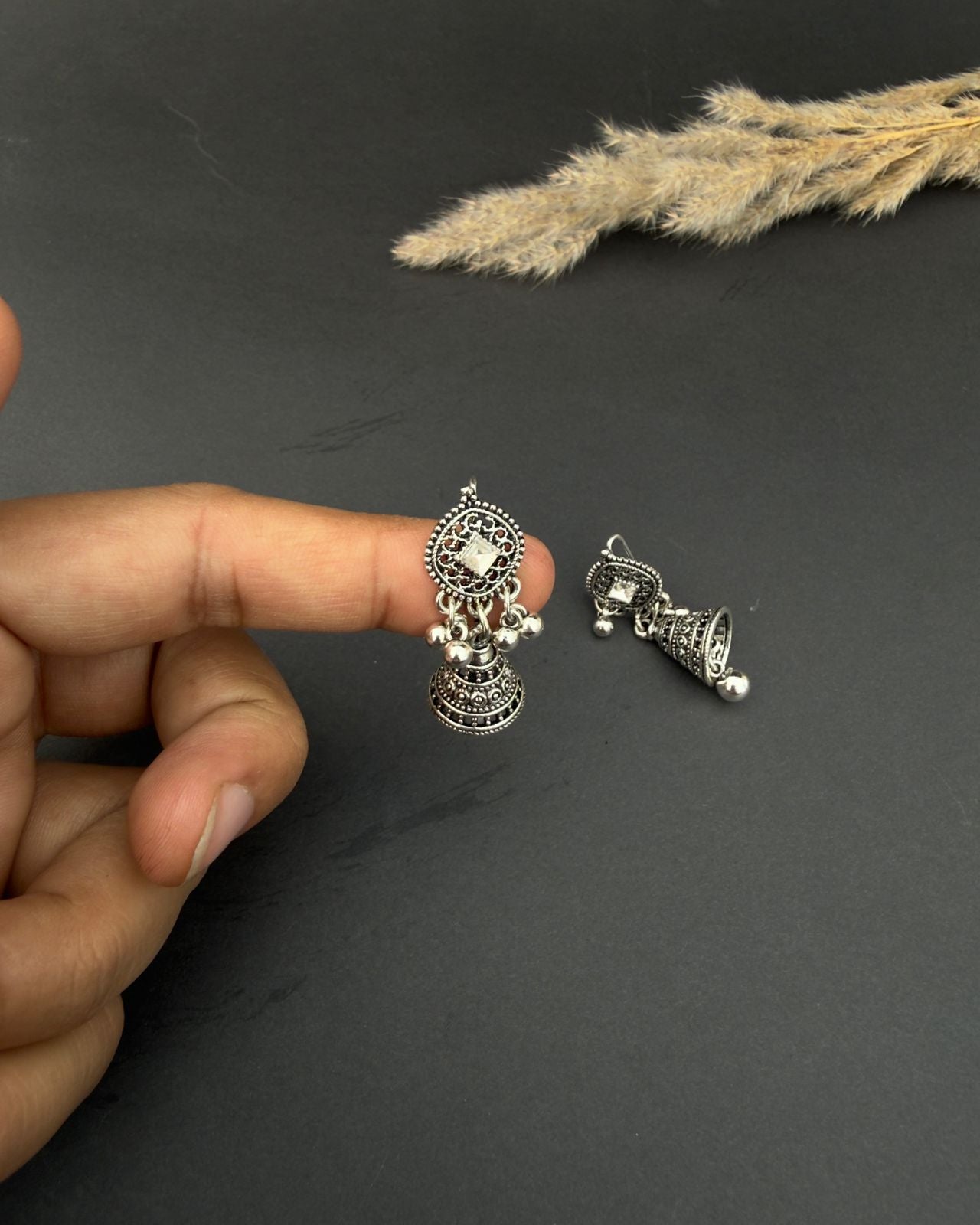 Elevate your look with these Silver Oxidized Jhumki Earrings β a perfect mix of tradition and trend. Lightweight and intricately designed, they're ideal for casual wear, festive looks, or mehndi events. A must-have in fashion jewellery.