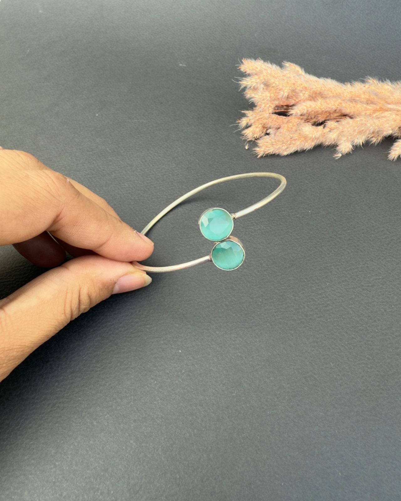 Premium silver oxidized handmade bangle with stone