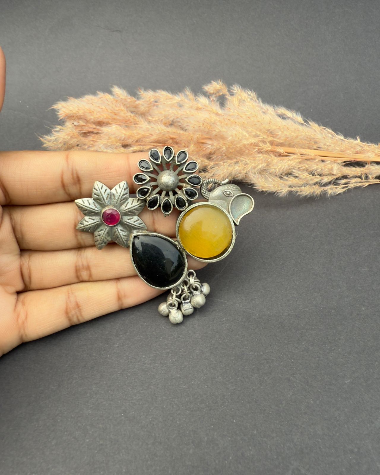 This artistic ring with stone work totaly handmade with premium quality brass silver oxidized plated as its handmade so a little human touch would be visible.