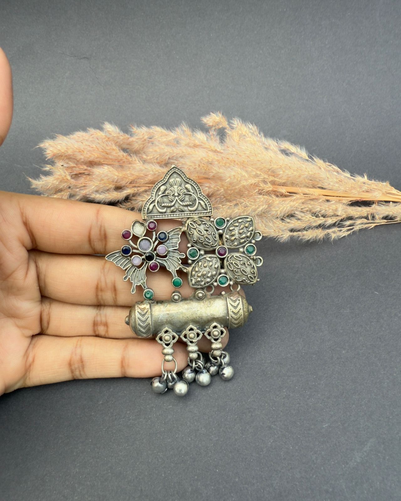 This artistic ring with stone work totaly handmade with premium quality brass silver oxidized plated as its handmade so a little human touch would be visible.