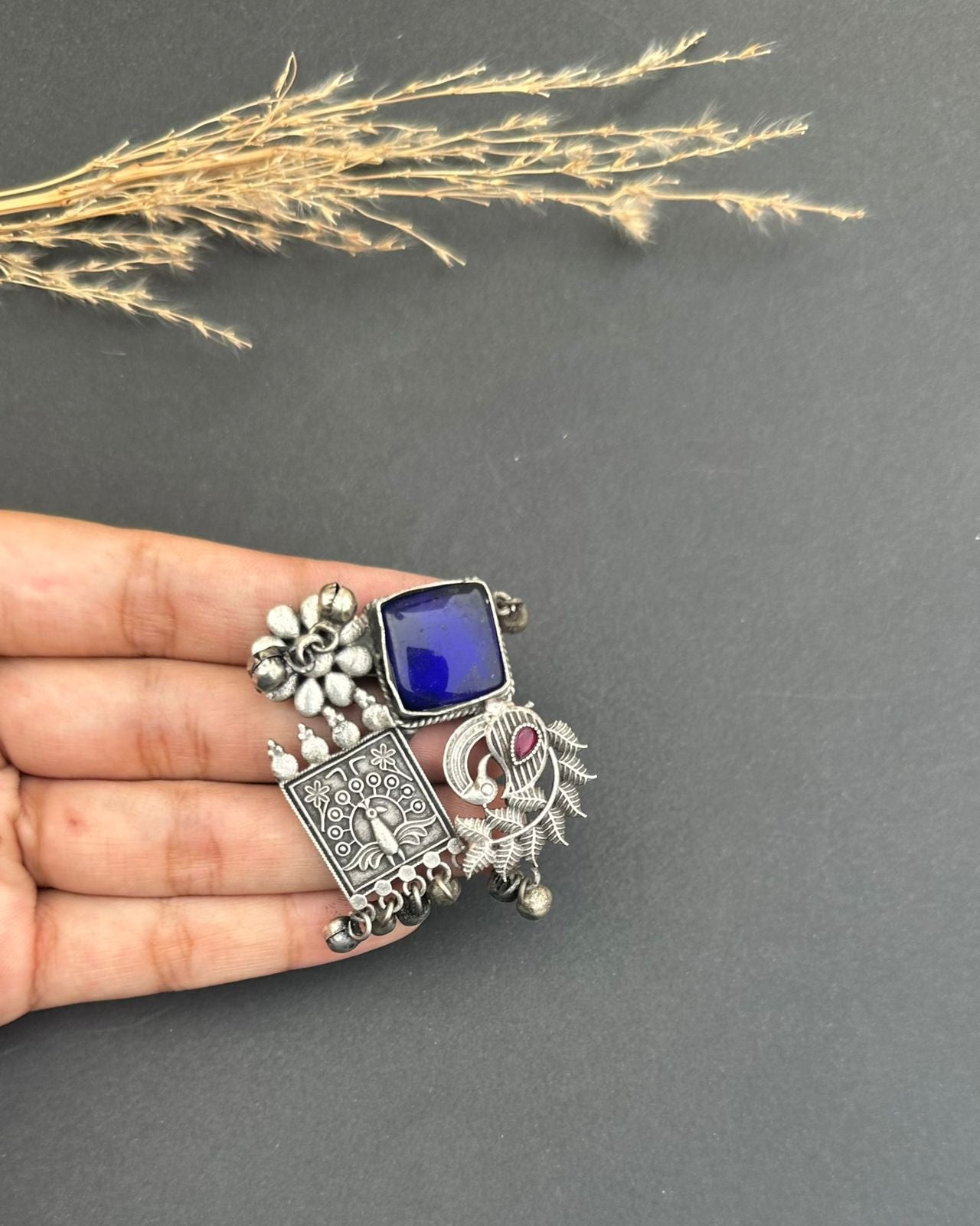 This artistic ring with stone work totaly handmade with premium quality brass silver oxidized plated as its handmade so a little human touch would be visible.