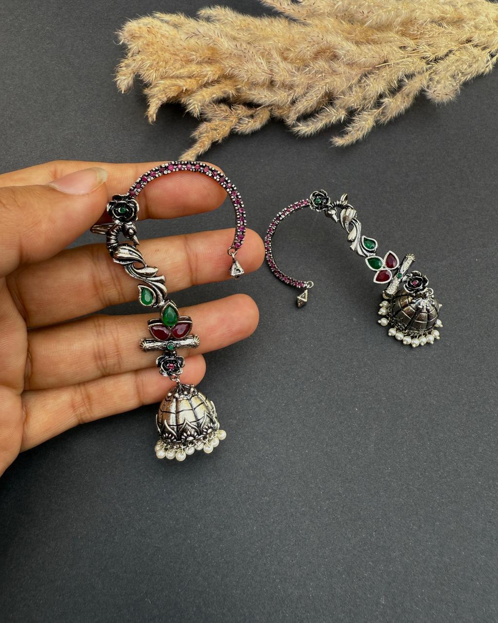 - 18K Silver Plated Handmade earrings made in an antique style with a combination of stones & pearls to enhance its look.