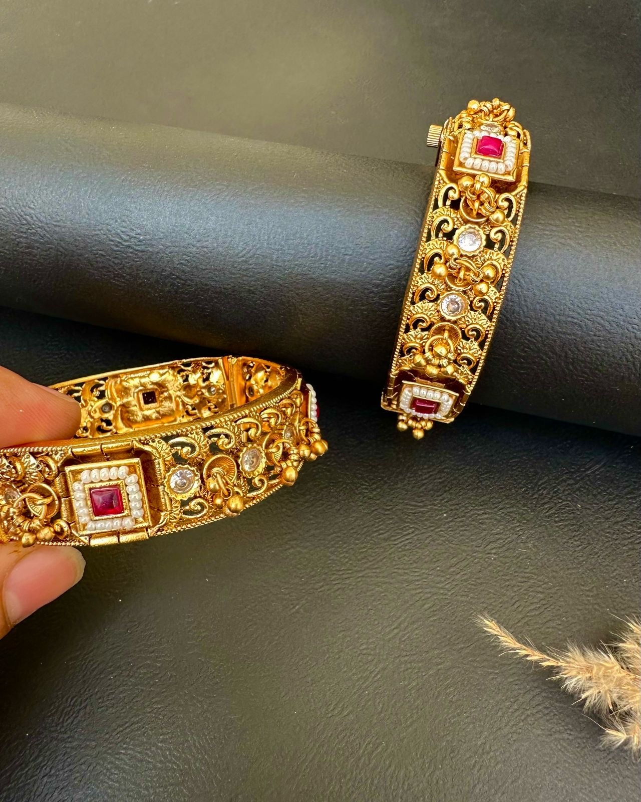 Marwari jewelry is basically a Rajasthani traditional jewelry, mostly worn by brides, its been made with brass and copper mixture gold plated with specially boasts of multi colored gems and pearls work known as the ‘aad’ which is unique to Rajasthani culture, and has recently captured the imagination of contemporary brides from different cultures.
