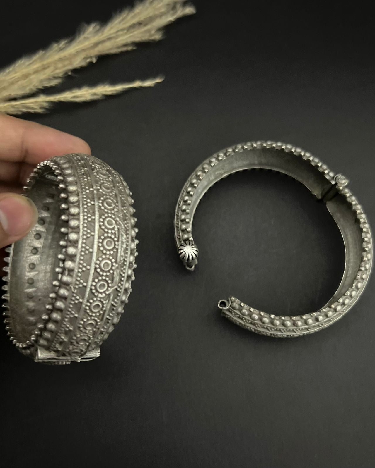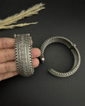 Premium silver oxidized handmade kara with stones and adjustable lock.