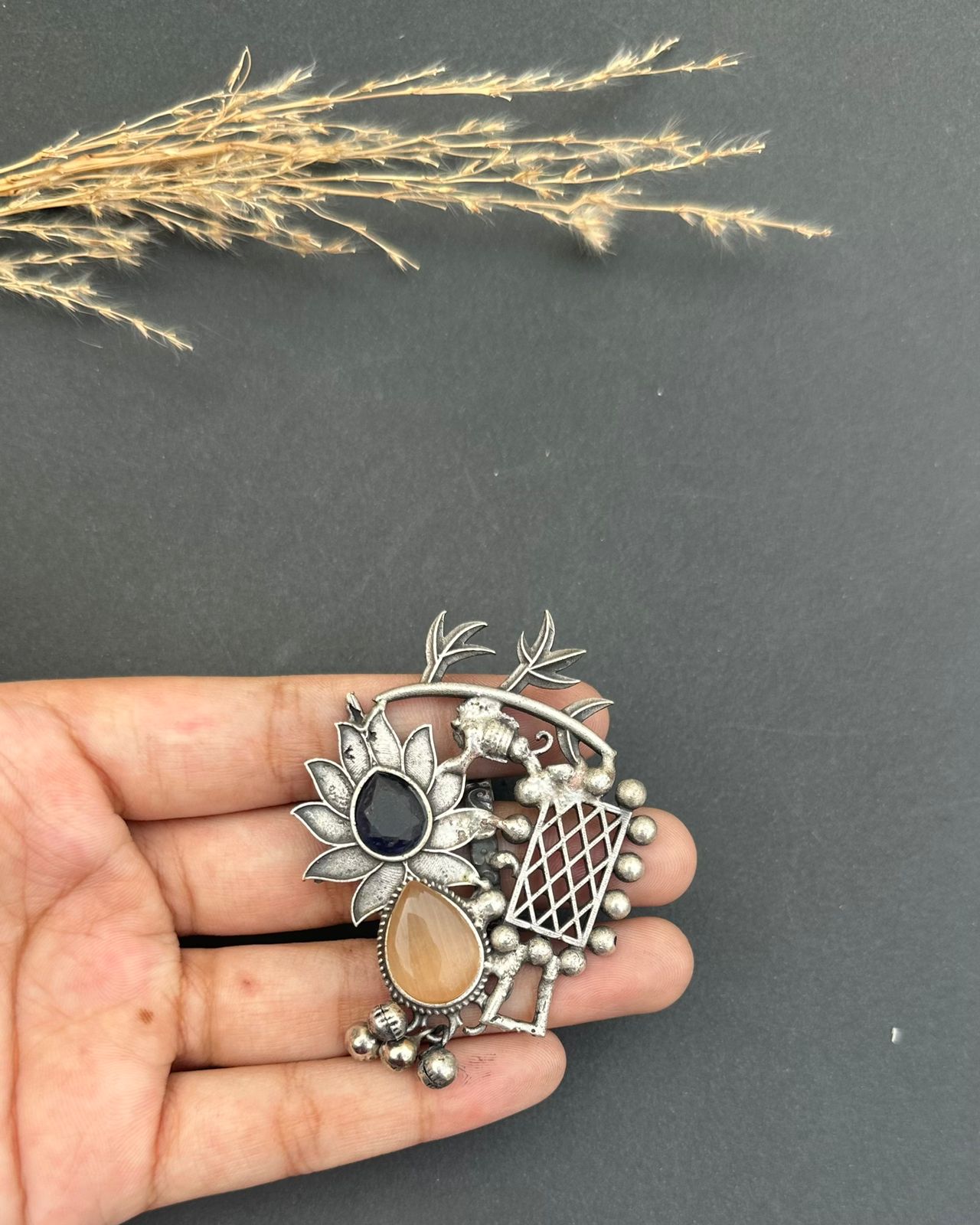 This artistic ring with stone work totaly handmade with premium quality brass silver oxidized plated as its handmade so a little human touch would be visible.