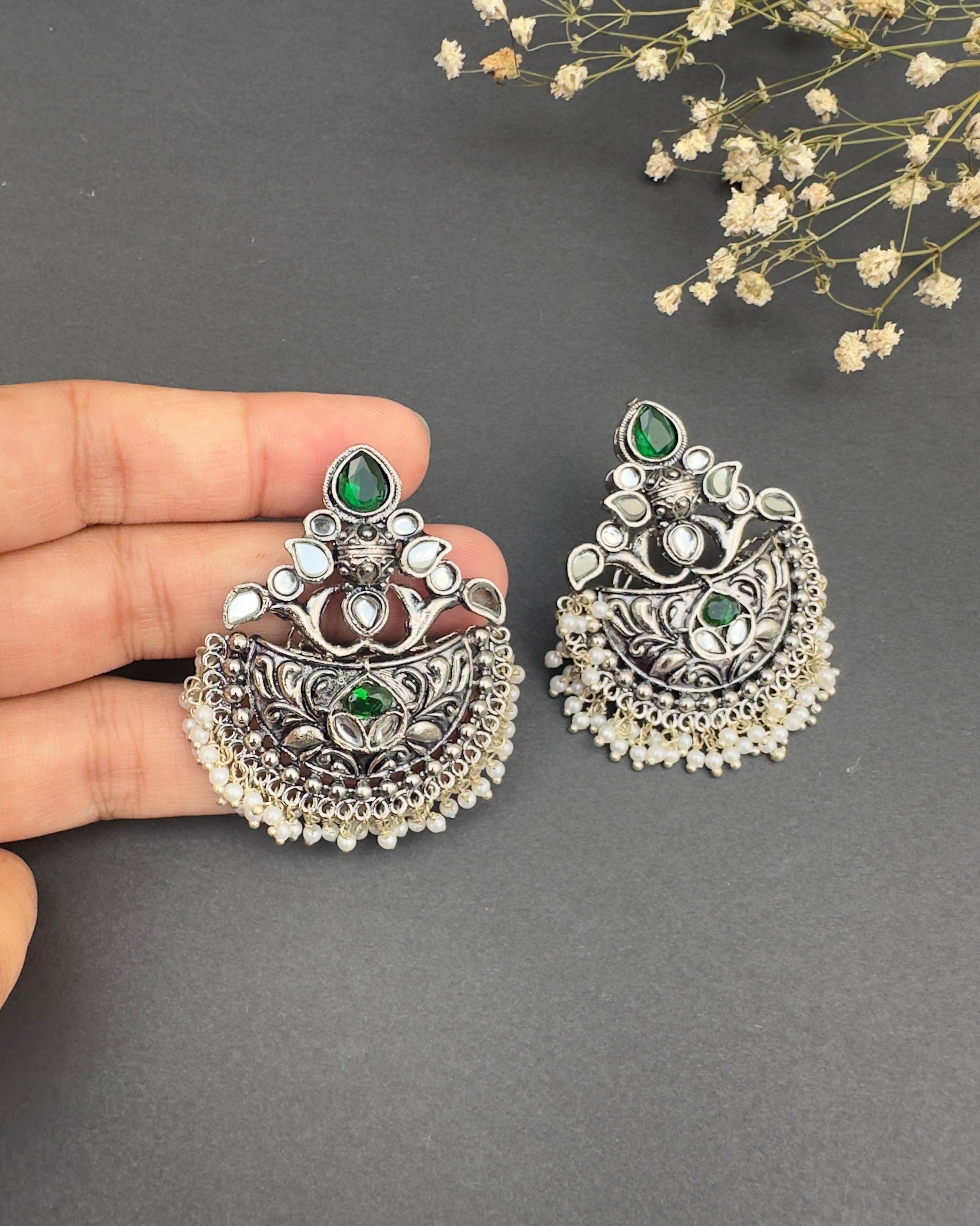 - 18K Silver Plated Handmade earrings made in an antique style with a combination of stones & pearls to enhance its look.