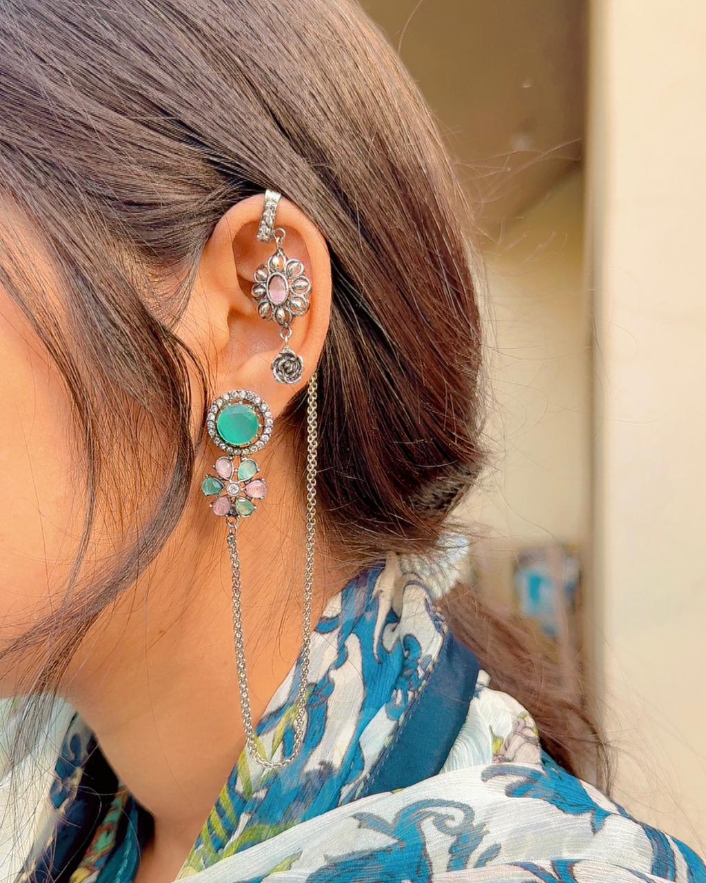 - 18K Silver Plated Handmade earrings made in an antique style with a combination of stones & pearls to enhance its look.