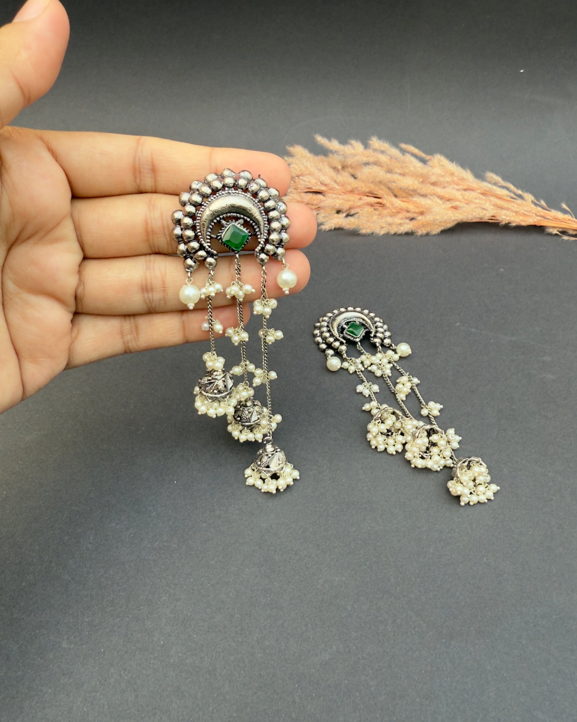 - 18K Silver Plated Handmade earrings made in an antique style with a combination of stones & pearls to enhance its look.