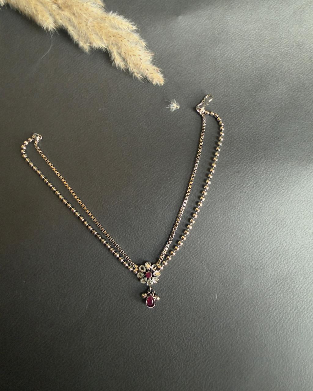 - 18K Silver Plated Handmade payal made in an antique style with stones to enhance its look.